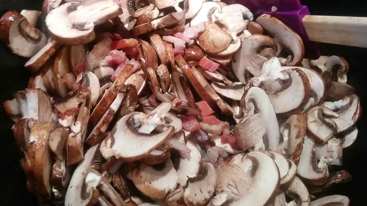 bacon over medium-high heat. Add the mushrooms, onions, carrots, celery and thyme. Cook until softened, about 8-10 minutes. Season with salt and pepper