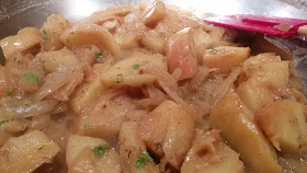 Onions. I cut the apples in pretty big chunks and I did NOT peel them.